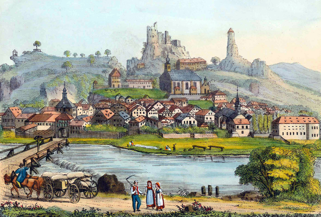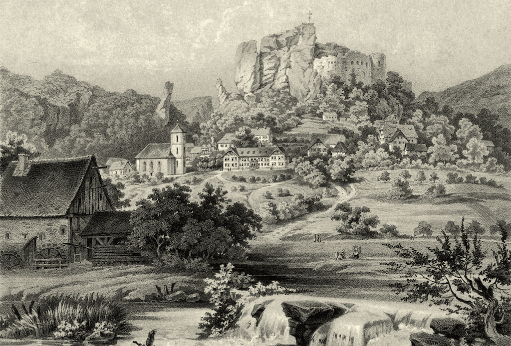 Streitberg verfügte zu Beginn des 19. Jahrhunderts über ein halbes Dutzend Wirts- und Gasthäuser für seine Besucher. Was für ein Angebot allerorten gegenüber der tristen Leere unserer Moderne! Von der für den Ort wohl spektakulärsten Quartiernahme berichtet eine der schillerndsten Persönlichkeiten dieser Zeit, Fürst Hermann Heinrich Pückler-Muskau: „Die Dämmerung begann bereits, als ich das romantische Wiesenthal erreichte, eine wahre goldne Aue an Fruchtbarkeit und Frische, von bebuschten Hügeln, schroffen Felsen und zerstörten Burgen eingefaßt. Erst um 11 Uhr kamen wir in Streitberg an und fanden den ansehnlichsten Gasthof besetzt. Um zu dem nächsten zu gelangen, mussten wir noch einen beschwerlichen Berg hinauffahren, und als wir endlich da waren, lag alles in tiefem Schlaf. Etwas von Migräne geplagt, hatte ich viele Noth, mich in einer elenden Bauernstube einzurichten. Doch ward alles durch die große Bereitwilligkeit und Gutmütigkeit der Leute erleichtert, die mit stiller Bewunderung aus meinen Kästen und Nachtsäcken ein ganzes Bett, unzählige Büchsen, Würsten und Flaschen, Eßwaaren, Wein, Toiletten, Bücher und Schreibmaterialien, Lampen, Perspektive und der Himmel weiß was sonst noch alles, nach einander hervorkommen sahen, daß sie einen Vexirbeutel vor sich zu sehen glaubten, und das eine Mädchen zuletzt so herzlich darüber zu lachen anfing, als würde in der Schenke ein Puppenspiel aufgeführt.“
