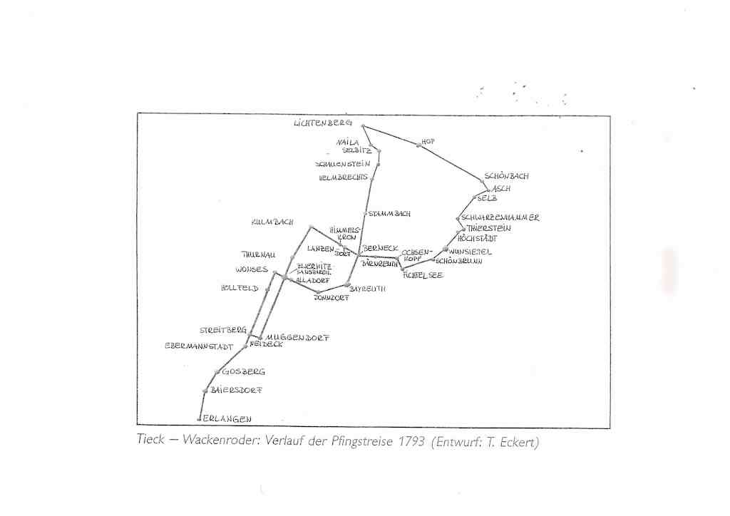 Der Student Ludwig Tieck, beschreibt die historische Morgenröte, die von der Französischen Revolution erzeugt wurde. Er bringt einen großen Teil romantischer Phänomene am Pfingstsamstag 1793, als er die Talverengung zwischen Ebermannstadt und Streitberg sieht, als erster auf den Punkt: „…Hinter Ebermannstadt reitet man immer durch ein äußerst romantisches Tal, durch das sich die Wiesent schlängelt……Oh die Natur ist doch an Schönheit unerschöpflich! Hier nur ist der wahre Genuß, eine schöne Gegend veredelt den Menschen, eine schlechte macht ihn kleinlaut und scheu, die erhabene stimmt ihn erhaben,- nur in einer solchen Gegend schöne brave Republikaner!- Oh Schweiz, Frankreich – wenn ich doch hinfliegen könnte, mit genießen und mit für die Freiheit sterben!...“