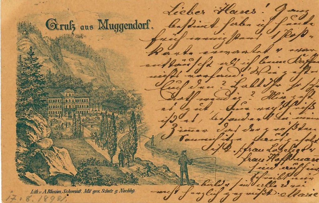 Muggendorf wurde wegen seiner zahlreichen Gasthäuser wie Streitberg zur frühen touristischen Zentrale: „Mein Gasthof ist recht gut, aber ganz in dem Stil einer wohlgehaltnen Schenke, und es ist unbegreiflich, daß bei dem während der Sommermonate nicht abbrechenden Besuch dennoch so wenig für Komfort und Eleganz hier gethan ist. Was am meisten vermißt wird, sind Matratzen und Esel, deren Mangel am Tage die Fatigue vermehrt, weil man alle Excursionen zu Fuße machen muß, und in der Nacht die Ruhe erschwert, da die heißen Federbetten erstickend sind. Mein Wirth, den ich deshalb sehr admonirt, hat mir für Beides künftiges Jahr zu sorgen versprochen, und hält er Wort, so werde ich mich sehr um die fränkische Schweiz verdient gemacht haben….doch hat die hiesige Bewirthung auch ihre sehr lobenswerten Seiten, welche die Gerechtigkeit des Historikers nicht übergehen darf. Forellen, Krebse und Kirschen sind nirgends besser. Nie aber kann man genug den Nektar Baierns, das vortreffliche Bier, rühmen, was man überall, frisch vom Fasse im Felsenkeller abgezapft, kalt wie Eis erhält, und dessen kräftige aromatische Bitterkeit dem Magen eben so sehr zusagt, als sein geringer Alkoholgehalt verhindert, daß es zu Kopfe steige. Nie wird es anders als in großen Gläsern mit Metalldeckeln servirt, die es frisch bleiben lassen und ihm den kräftigen Geruch bis auf den letzten Schluck erhalten.“ Unübertreffliche Werbung für das Bier aus der Fränkischen Schweiz durch den Weltreisenden Hermann von Pückler im Jahr 1834.