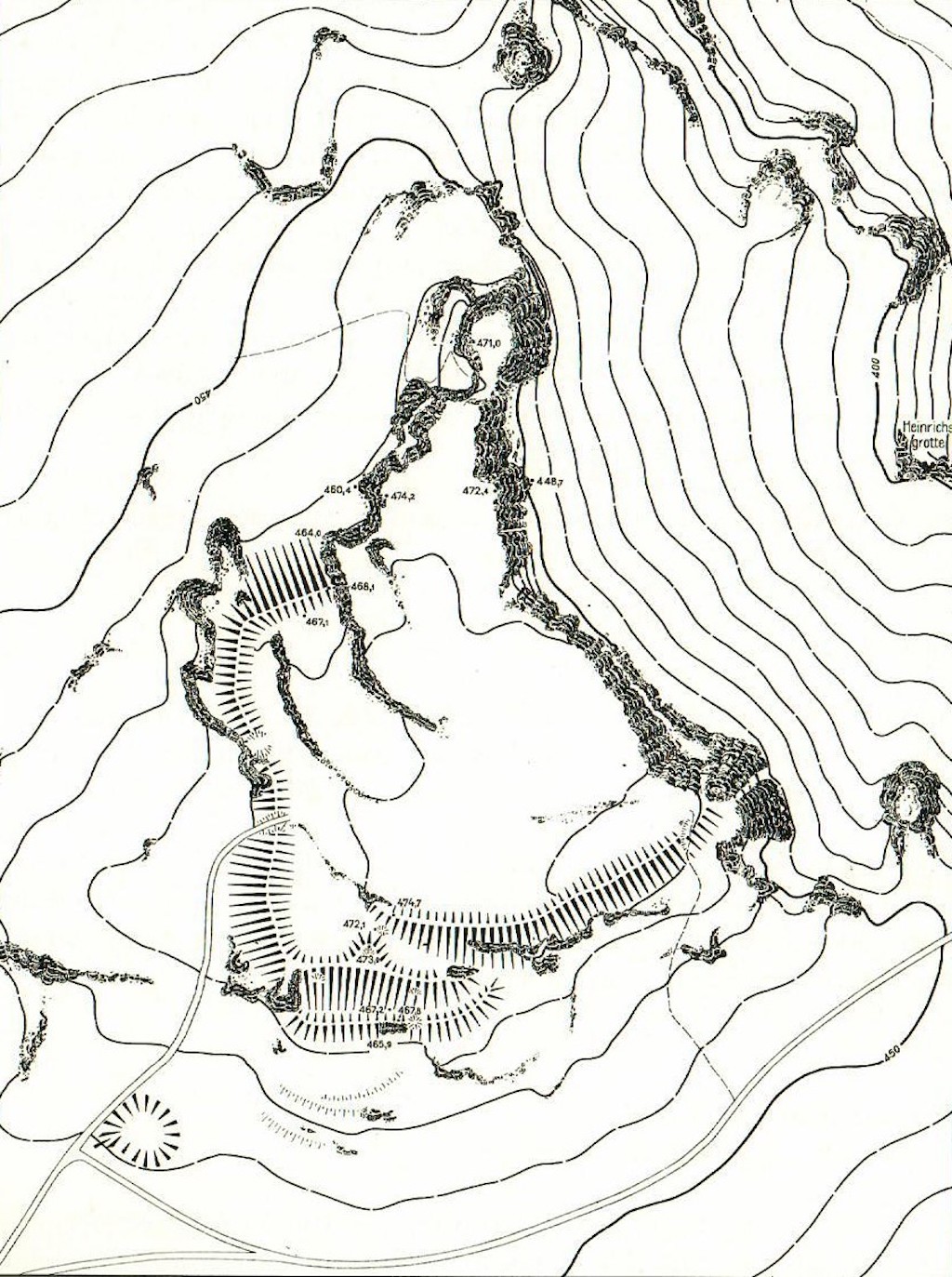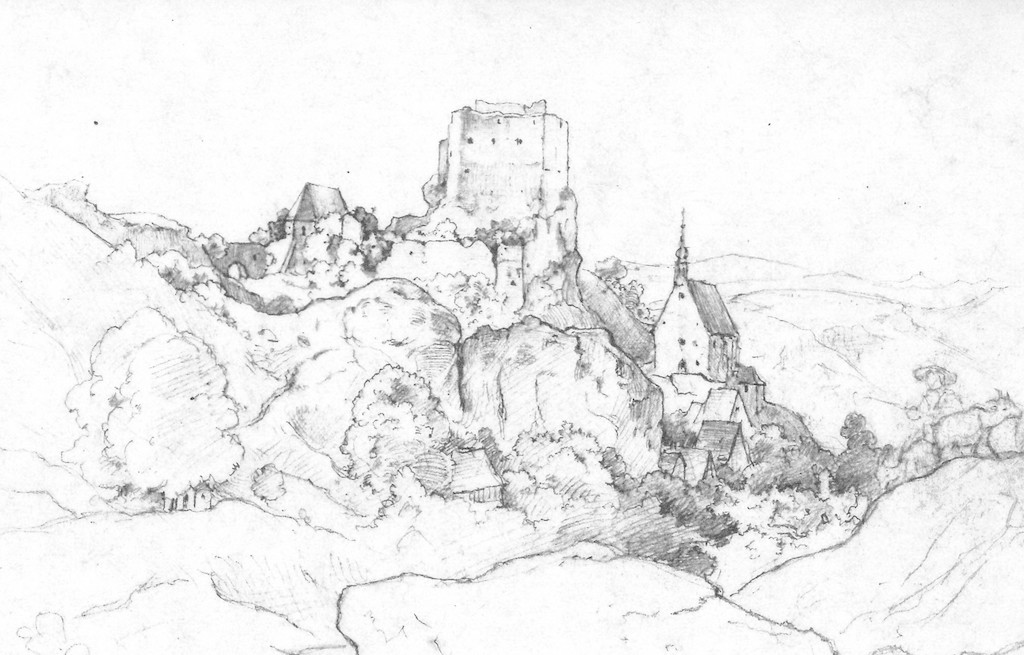 Diese von Heller erwähnte Ruine eines Wartturmes ist an der südwestlichen Ecke des Schloßberges noch heute als Burgstall erkennbar.