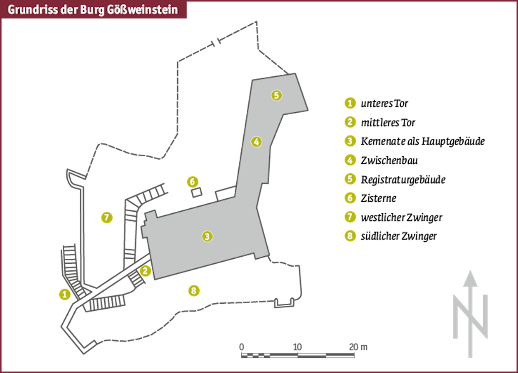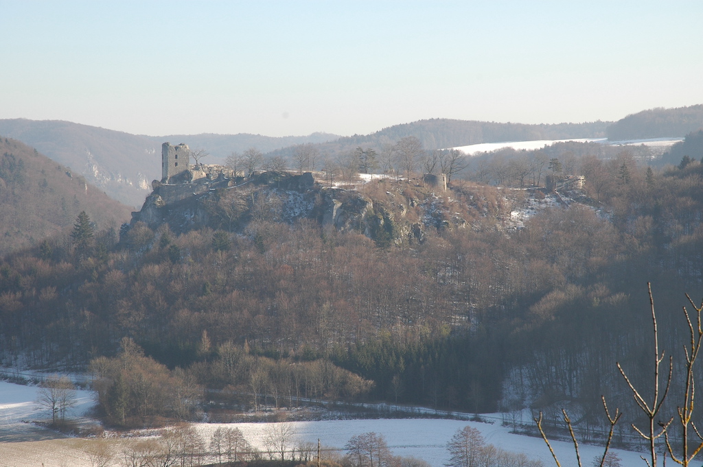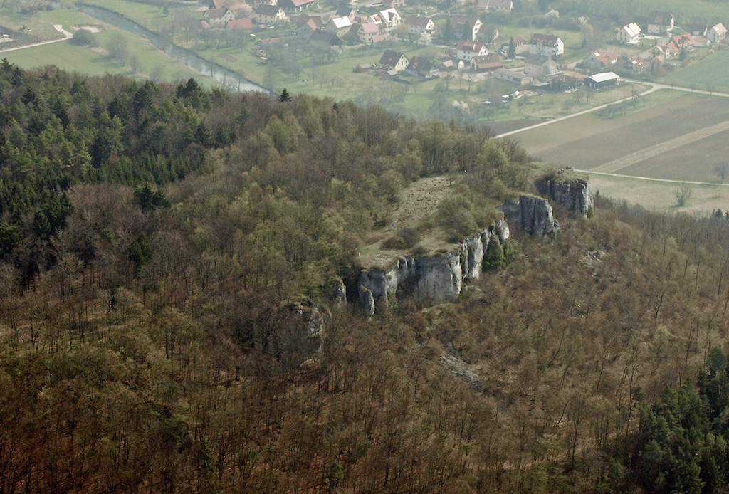 Die ehemalige Burganlage des 12./13. Jahrhunderts ist heute noch gut lokalisierbar. Ein mindestens 13 m breiter Halsgraben trennt den ehemals befestigten Sporn vom Bergrücken ab. Westlich dieses Grabens liegt die Vorburg, die eine Fläche von etwa 1500 m² aufweist und sich Richtung Spornspitze verjüngt. Vor der Hauptburg wurde noch einmal ein 7 m breiter Abschnittsgraben eingezogen. Diese schmal zulaufende Grundfläche besitzt an der Grabenseite eine Breite von 20 m, an der Spitze weist sie teilweise nur noch 7 m auf. Die Lage des Bauplatzes in ausgeprägter Lage eines flächenmäßig kleineren Bergsporns ermöglicht ihre Errichtung nach 1150, als in der Stauferzeit eine Tendenz zu erkennen ist, die Hauptburg zur Spornspitze zu schieben. Die Anlage zeigt dem heutigen Besucher keine Reste von Bebauung, dafür lohnt der herrliche Weitblick über das Wiesenttal einen Besuch. Die hochmittelalterliche Anlage ist als Pendant zur Burg Schlüsselberg bei Waischenfeld zu bewerten. Beide Anlagen stellen wie Zwillinge Beginn und Ende des Schlüsselbergerweges dar.